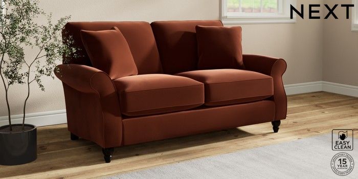 7.2.10 Ashford Relaxed Sit 2 Seater Sofa Plush Velvet Easy Clean Ginger Orange Low Turned - Dark | Made Click here to use our website with more accessibility support, for example screen readers