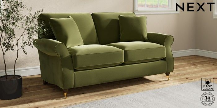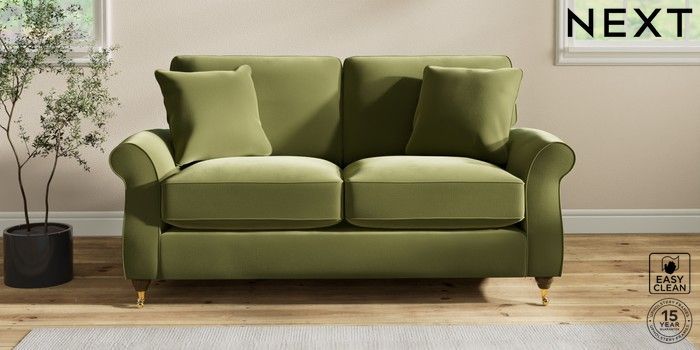 7.2.10 Ashford Relaxed Sit 2 Seater Sofa Plush Velvet Easy Clean Mid Olive Green Castor - Mid | Made Click here to use our website with more accessibility support, for example screen readers