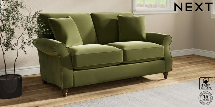 7.2.10 Ashford Relaxed Sit 2 Seater Sofa Plush Velvet Easy Clean Mid Olive Green Low Turned - Mid | Made Click here to use our website with more accessibility support, for example screen readers
