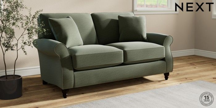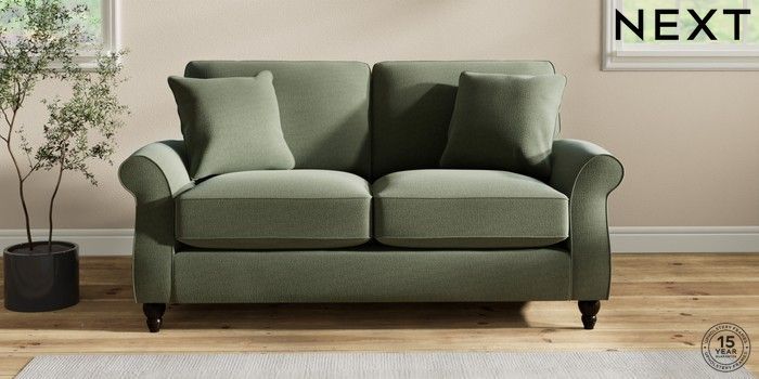 7.2.10 Ashford Relaxed Sit 2 Seater Sofa Relaxed Linen Look Dark Green Low Turned - Dark | Made Click here to use our website with more accessibility support, for example screen readers