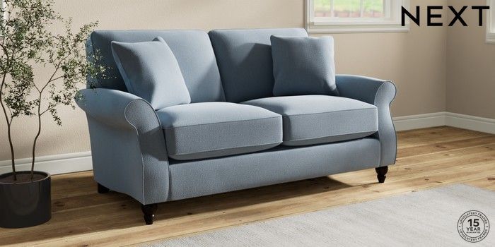 7.2.10 Ashford Relaxed Sit 2 Seater Sofa Relaxed Linen Look Mid Blue Low Turned - Dark | Made Click here to use our website with more accessibility support, for example screen readers
