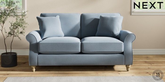7.2.10 Ashford Relaxed Sit 2 Seater Sofa Relaxed Linen Look Mid Blue Low Turned - Light | Made Click here to use our website with more accessibility support, for example screen readers