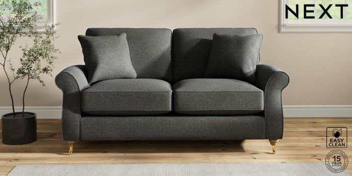 7.2.10 Ashford Relaxed Sit 2 Seater Sofa Tweedy Blend Easy Clean Charcoal Grey Castor - Light | Made Click here to use our website with more accessibility support, for example screen readers