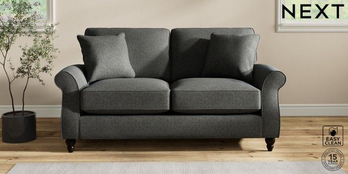 7.2.10 Ashford Relaxed Sit 2 Seater Sofa Tweedy Blend Easy Clean Charcoal Grey Low Turned - Dark | Made Click here to use our website with more accessibility support, for example screen readers
