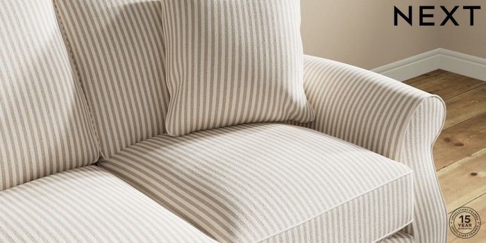 7.2.10 Ashford Relaxed Sit 3 Cushion 3 Seater Sofa Chenille Stripe Natural Low Turned - Light | Made Click here to use our website with more accessibility support, for example screen readers
