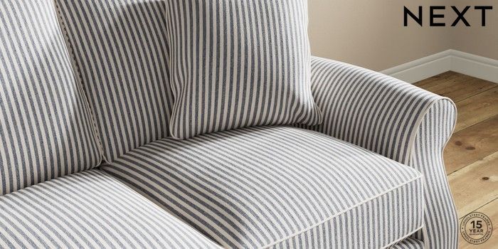 7.2.10 Ashford Relaxed Sit 3 Cushion 3 Seater Sofa Chenille Stripe Slate Blue Low Turned - Light | Made Click here to use our website with more accessibility support, for example screen readers