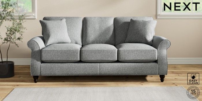 7.2.10 Ashford Relaxed Sit 3 Cushion 3 Seater Sofa Chunky Boucle Easy Clean Mid Grey Low Turned - Dark | Made Click here to use our website with more accessibility support, for example screen readers
