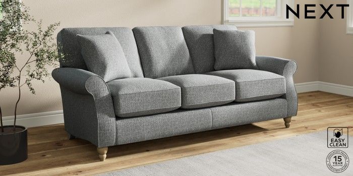 7.2.10 Ashford Relaxed Sit 3 Cushion 3 Seater Sofa Chunky Boucle Easy Clean Mid Grey Low Turned - Light | Made Click here to use our website with more accessibility support, for example screen readers