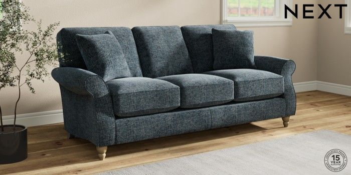 7.2.10 Ashford Relaxed Sit 3 Cushion 3 Seater Sofa Chunky Chenille Dark Navy Blue Low Turned - Light | Made Click here to use our website with more accessibility support, for example screen readers