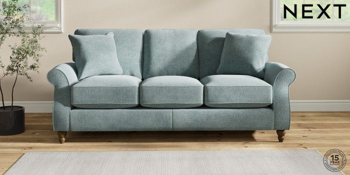 7.2.10 Ashford Relaxed Sit 3 Cushion 3 Seater Sofa Chunky Chenille Light Teal Green Low Turned - Mid | Made Click here to use our website with more accessibility support, for example screen readers
