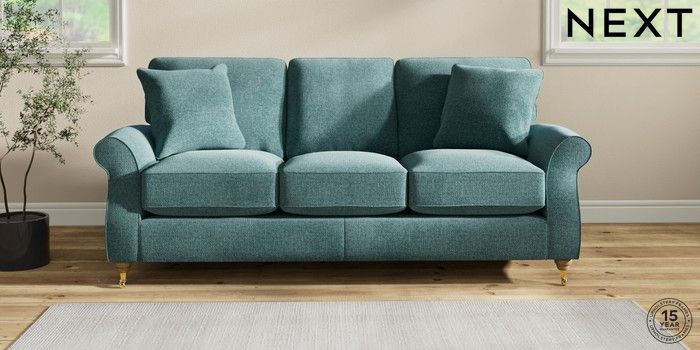 7.2.10 Ashford Relaxed Sit 3 Cushion 3 Seater Sofa Chunky Chenille Mid Teal Green Castor - Light | Made Click here to use our website with more accessibility support, for example screen readers