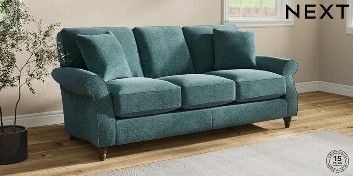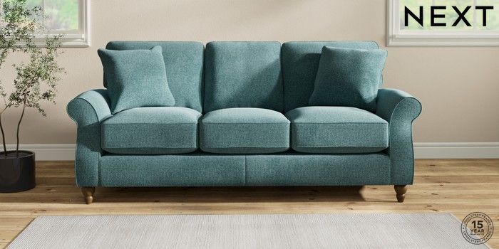 7.2.10 Ashford Relaxed Sit 3 Cushion 3 Seater Sofa Chunky Chenille Mid Teal Green Low Turned - Mid | Made Click here to use our website with more accessibility support, for example screen readers