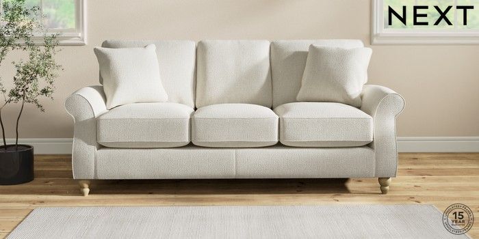 7.2.10 Ashford Relaxed Sit 3 Cushion 3 Seater Sofa Chunky Texture Oyster Low Turned - Light | Made Click here to use our website with more accessibility support, for example screen readers