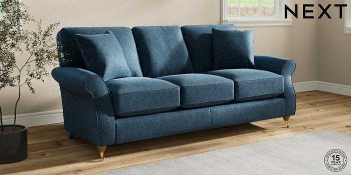 7.2.10 Ashford Relaxed Sit 3 Cushion 3 Seater Sofa Cotswold Chenille Dark Blue Castor - Light | Made Click here to use our website with more accessibility support, for example screen readers
