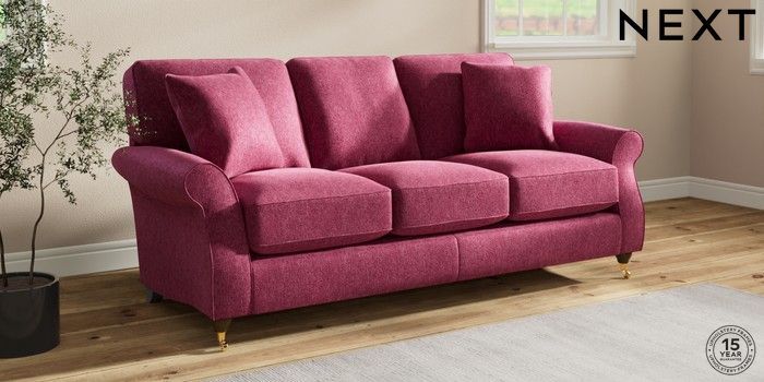 7.2.10 Ashford Relaxed Sit 3 Cushion 3 Seater Sofa Cotswold Chenille Dark Raspberry Pink Castor - Mid | Made Click here to use our website with more accessibility support, for example screen readers