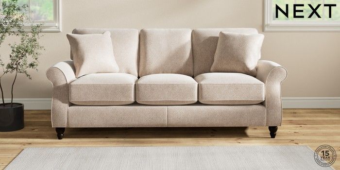 7.2.10 Ashford Relaxed Sit 3 Cushion 3 Seater Sofa Cotswold Chenille Light Natural Low Turned - Dark | Made Click here to use our website with more accessibility support, for example screen readers