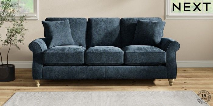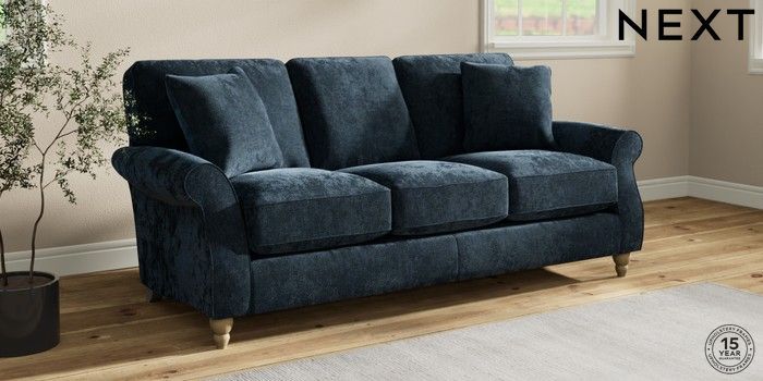 7.2.10 Ashford Relaxed Sit 3 Cushion 3 Seater Sofa Distressed Velour Midnight Blue Low Turned - Light | Made Click here to use our website with more accessibility support, for example screen readers