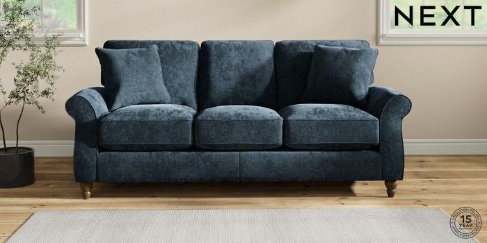 7.2.10 Ashford Relaxed Sit 3 Cushion 3 Seater Sofa Distressed Velour Midnight Blue Low Turned - Mid | Made Click here to use our website with more accessibility support, for example screen readers