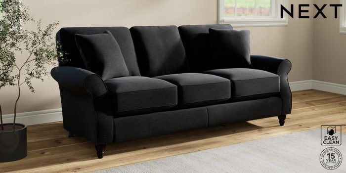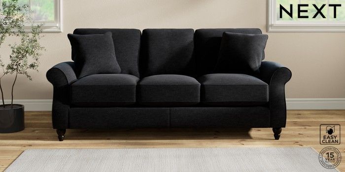 7.2.10 Ashford Relaxed Sit 3 Cushion 3 Seater Sofa Fine Chenille Easy Clean Black Low Turned - Dark | Made Click here to use our website with more accessibility support, for example screen readers