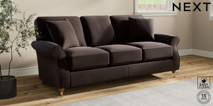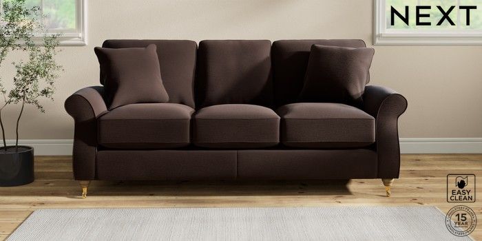 7.2.10 Ashford Relaxed Sit 3 Cushion 3 Seater Sofa Fine Chenille Easy Clean Chocolate Brown Castor - Light | Made Click here to use our website with more accessibility support, for example screen readers