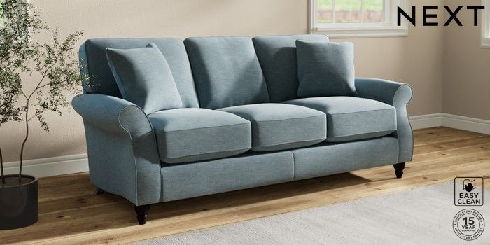 7.2.10 Ashford Relaxed Sit 3 Cushion 3 Seater Sofa Fine Chenille Easy Clean Mid Blue Low Turned - Dark | Made Click here to use our website with more accessibility support, for example screen readers