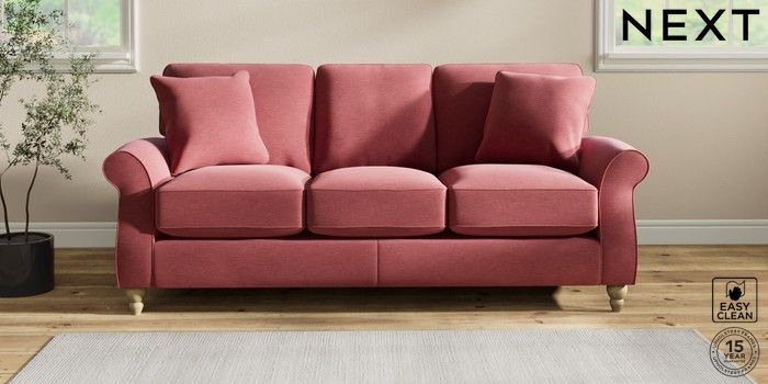 7.2.10 Ashford Relaxed Sit 3 Cushion 3 Seater Sofa Fine Chenille Easy Clean Mid Pink Low Turned - Light | Made Click here to use our website with more accessibility support, for example screen readers