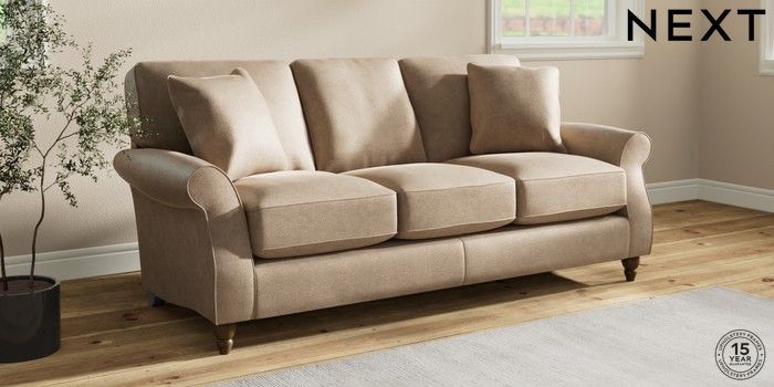 7.2.10 Ashford Relaxed Sit 3 Cushion 3 Seater Sofa Luxe Chenille Mid Camel Beige Low Turned - Mid | Made Click here to use our website with more accessibility support, for example screen readers