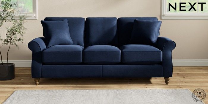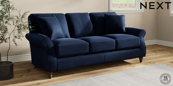 7.2.10 Ashford Relaxed Sit 3 Cushion 3 Seater Sofa Luxe Chenille Navy Blue Low Turned - Mid | Made Click here to use our website with more accessibility support, for example screen readers