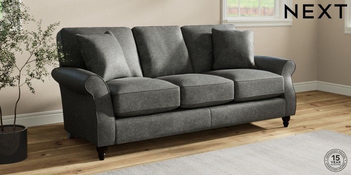 7.2.10 Ashford Relaxed Sit 3 Cushion 3 Seater Sofa Plush Chenille Dark Grey Low Turned - Dark | Made Click here to use our website with more accessibility support, for example screen readers