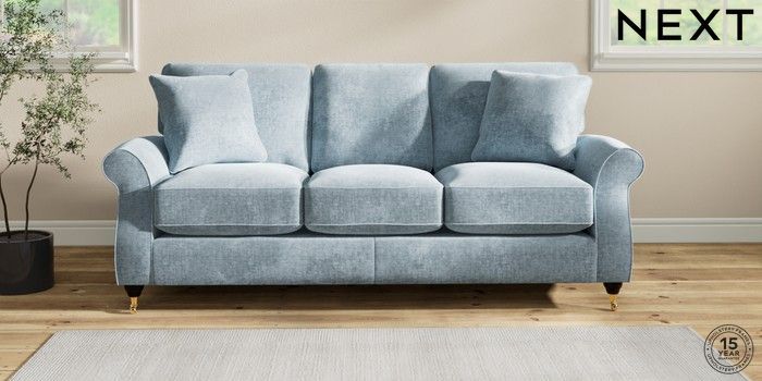 7.2.10 Ashford Relaxed Sit 3 Cushion 3 Seater Sofa Plush Chenille Light Blue Castor - Dark | Made Click here to use our website with more accessibility support, for example screen readers