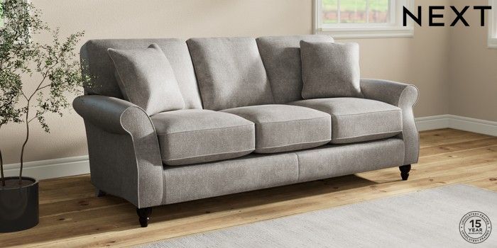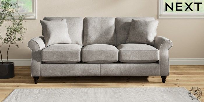 7.2.10 Ashford Relaxed Sit 3 Cushion 3 Seater Sofa Plush Chenille Light Grey Low Turned - Dark | Made Click here to use our website with more accessibility support, for example screen readers