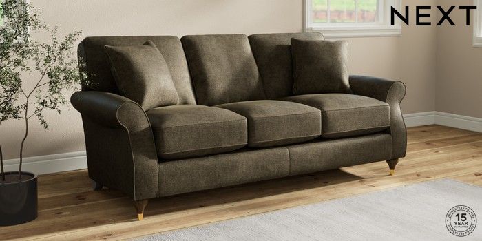 7.2.10 Ashford Relaxed Sit 3 Cushion 3 Seater Sofa Plush Chenille Moss Green Modern Turned Metal Cap - Mid | Made Click here to use our website with more accessibility support, for example screen readers