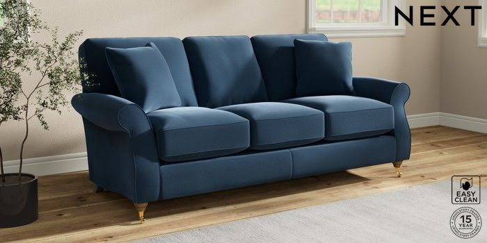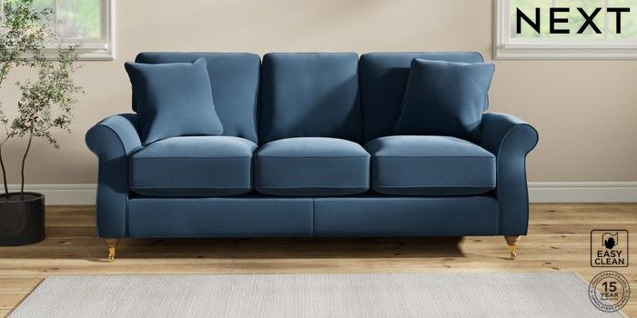 7.2.10 Ashford Relaxed Sit 3 Cushion 3 Seater Sofa Plush Velvet Easy Clean Airforce Blue Castor - Light | Made Click here to use our website with more accessibility support, for example screen readers
