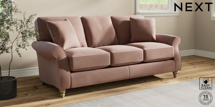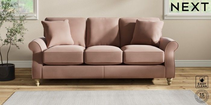 7.2.10 Ashford Relaxed Sit 3 Cushion 3 Seater Sofa Plush Velvet Easy Clean Mid Natural Low Turned - Light | Made Click here to use our website with more accessibility support, for example screen readers