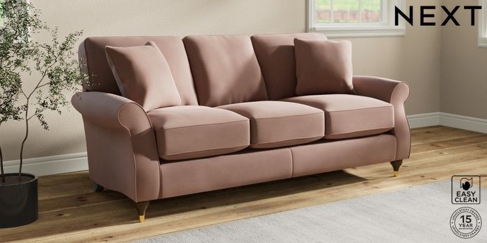 7.2.10 Ashford Relaxed Sit 3 Cushion 3 Seater Sofa Plush Velvet Easy Clean Mid Natural Modern Turned Metal Cap - Mid | Made Click here to use our website with more accessibility support, for example screen readers