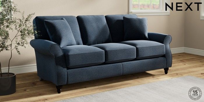 7.2.10 Ashford Relaxed Sit 3 Cushion 3 Seater Sofa Ripple Chenille Dark Blue Low Turned - Dark | Made Click here to use our website with more accessibility support, for example screen readers