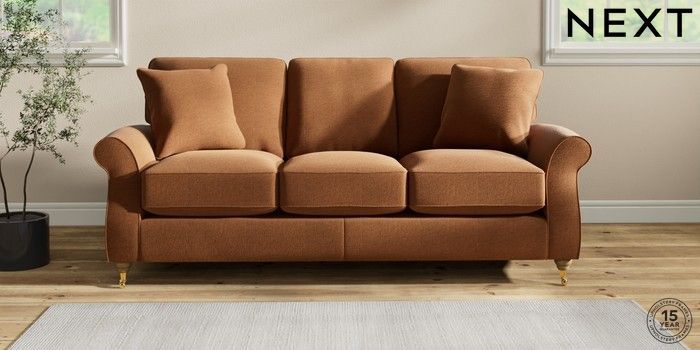7.2.10 Ashford Relaxed Sit 3 Cushion 3 Seater Sofa Ripple Chenille Mid Rust Brown Castor - Light | Made Click here to use our website with more accessibility support, for example screen readers