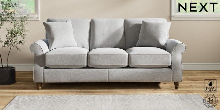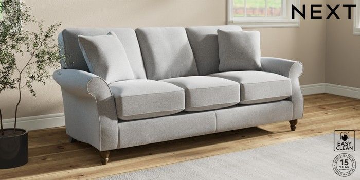 7.2.10 Ashford Relaxed Sit 3 Cushion 3 Seater Sofa Tweedy Blend Easy Clean Light Silver Grey Low Turned - Mid | Made Click here to use our website with more accessibility support, for example screen readers