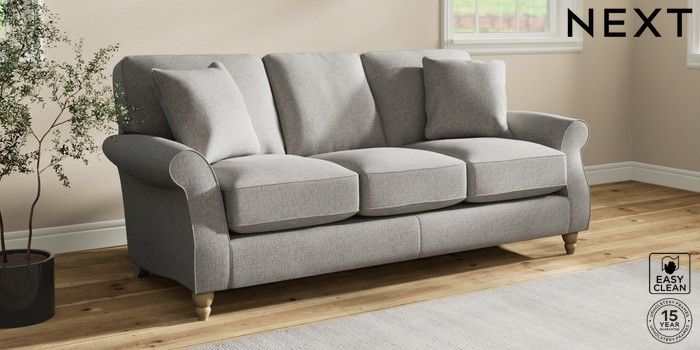 7.2.10 Ashford Relaxed Sit 3 Cushion 3 Seater Sofa Woven Chenille Easy Clean Light Grey Low Turned - Light | Made Click here to use our website with more accessibility support, for example screen readers