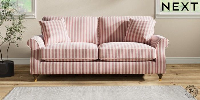 7.2.10 Ashford Relaxed Sit 3 Seater Sofa Bold Chenille Stripe Dark Pink Modern Turned Metal Cap - Mid | Made Click here to use our website with more accessibility support, for example screen readers