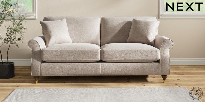 7.2.10 Ashford Relaxed Sit 3 Seater Sofa Boucle Chenille Light Natural Modern Turned Metal Cap - Mid | Made Click here to use our website with more accessibility support, for example screen readers