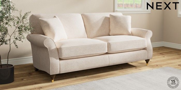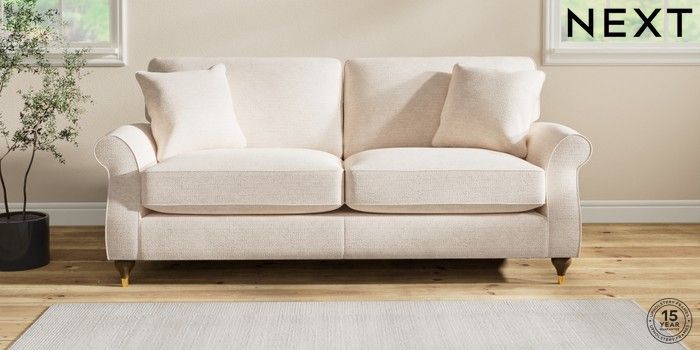 7.2.10 Ashford Relaxed Sit 3 Seater Sofa Boucle Chenille Oyster Modern Turned Metal Cap - Mid | Made Click here to use our website with more accessibility support, for example screen readers