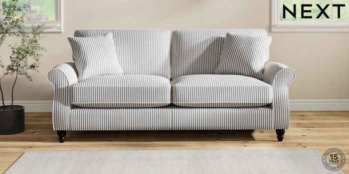 7.2.10 Ashford Relaxed Sit 3 Seater Sofa Chenille Stripe Slate Blue Low Turned - Dark | Made Click here to use our website with more accessibility support, for example screen readers