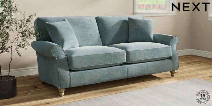 7.2.10 Ashford Relaxed Sit 3 Seater Sofa Chunky Chenille Light Teal Green Low Turned - Light | Made Click here to use our website with more accessibility support, for example screen readers