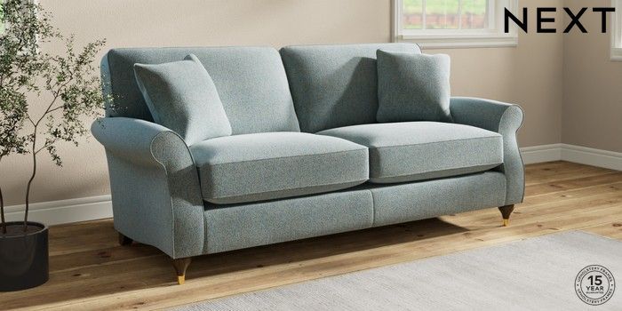7.2.10 Ashford Relaxed Sit 3 Seater Sofa Chunky Marl Mid Blue Modern Turned Metal Cap - Mid | Made Click here to use our website with more accessibility support, for example screen readers