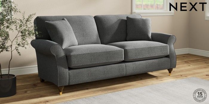 7.2.10 Ashford Relaxed Sit 3 Seater Sofa Chunky Texture Dark Grey Modern Turned Metal Cap - Mid | Made Click here to use our website with more accessibility support, for example screen readers