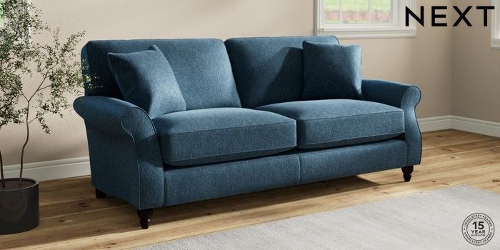 7.2.10 Ashford Relaxed Sit 3 Seater Sofa Cotswold Chenille Dark Blue Low Turned - Dark | Made Click here to use our website with more accessibility support, for example screen readers
