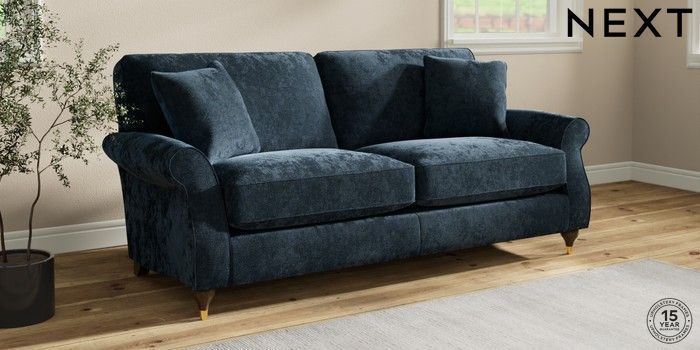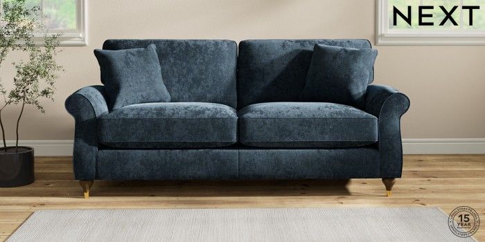 7.2.10 Ashford Relaxed Sit 3 Seater Sofa Distressed Velour Midnight Blue Modern Turned Metal Cap - Mid | Made Click here to use our website with more accessibility support, for example screen readers