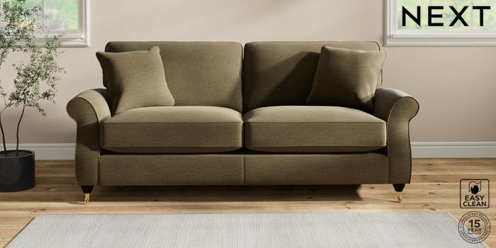 7.2.10 Ashford Relaxed Sit 3 Seater Sofa Fine Chenille Easy Clean Dark Moss Green Castor - Dark | Made Click here to use our website with more accessibility support, for example screen readers