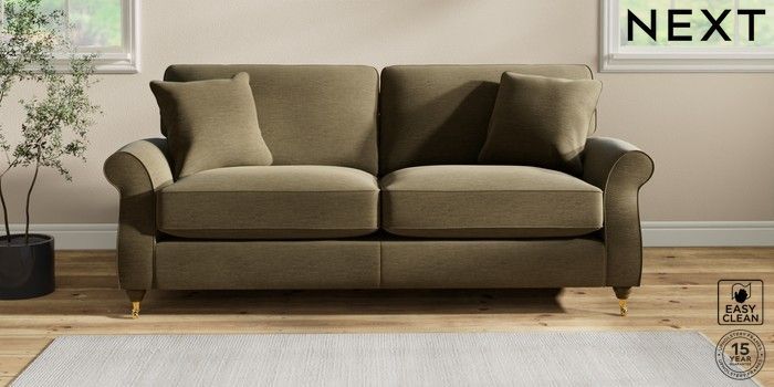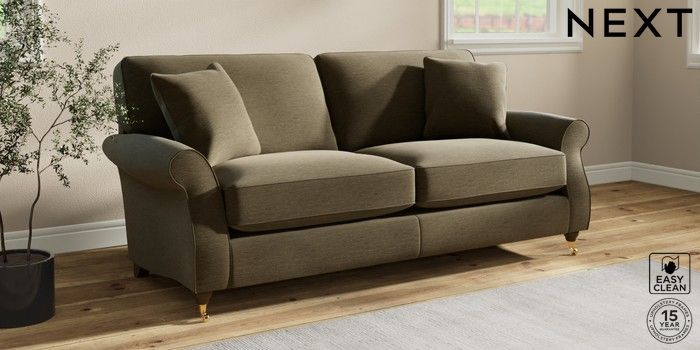 7.2.10 Ashford Relaxed Sit 3 Seater Sofa Fine Chenille Easy Clean Dark Moss Green Castor - Mid | Made Click here to use our website with more accessibility support, for example screen readers